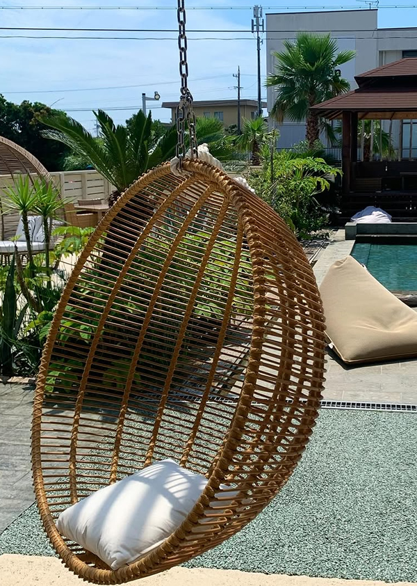 南国の緑とプールサイド、バリ直輸入の家具など場内のすべてがフォトスポットです。